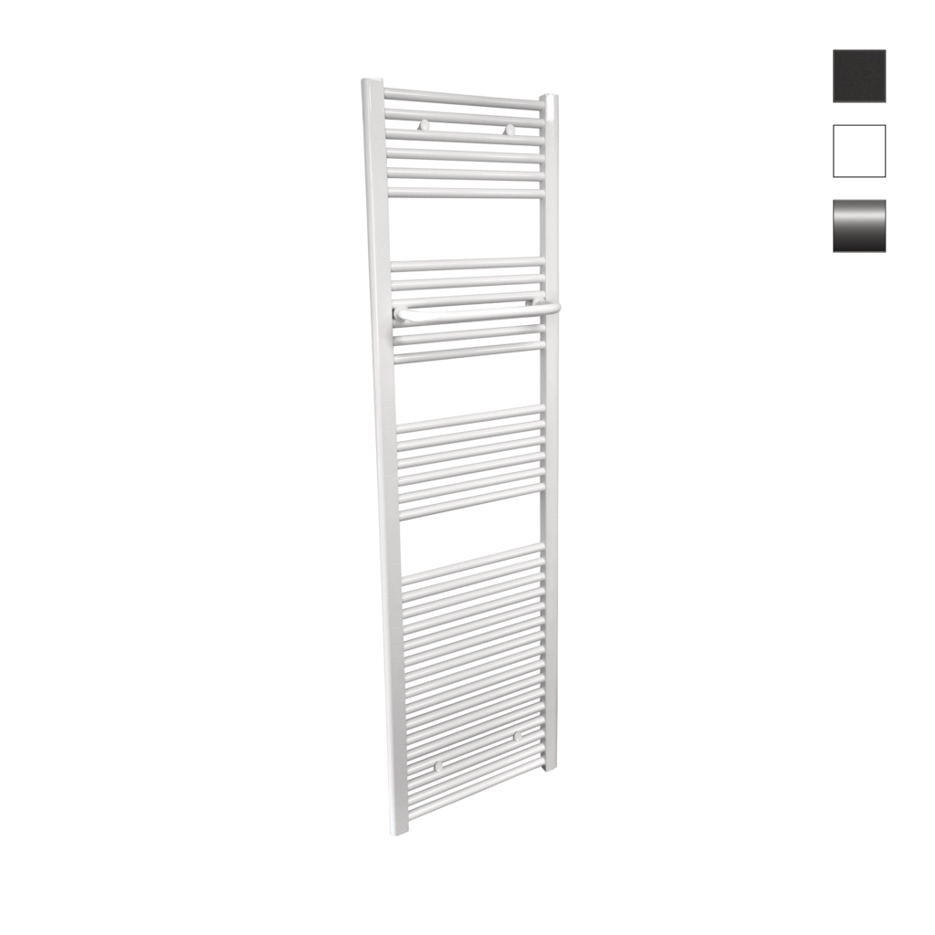Hij was al leverbaar in het chroom, maar nu hebben we ook de kleuren wit en mat zwart toegevoegd aan het assortiment! Een stijlvolle combinatie met onze witte en zwarte handdoekradiatoren!