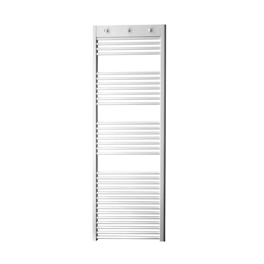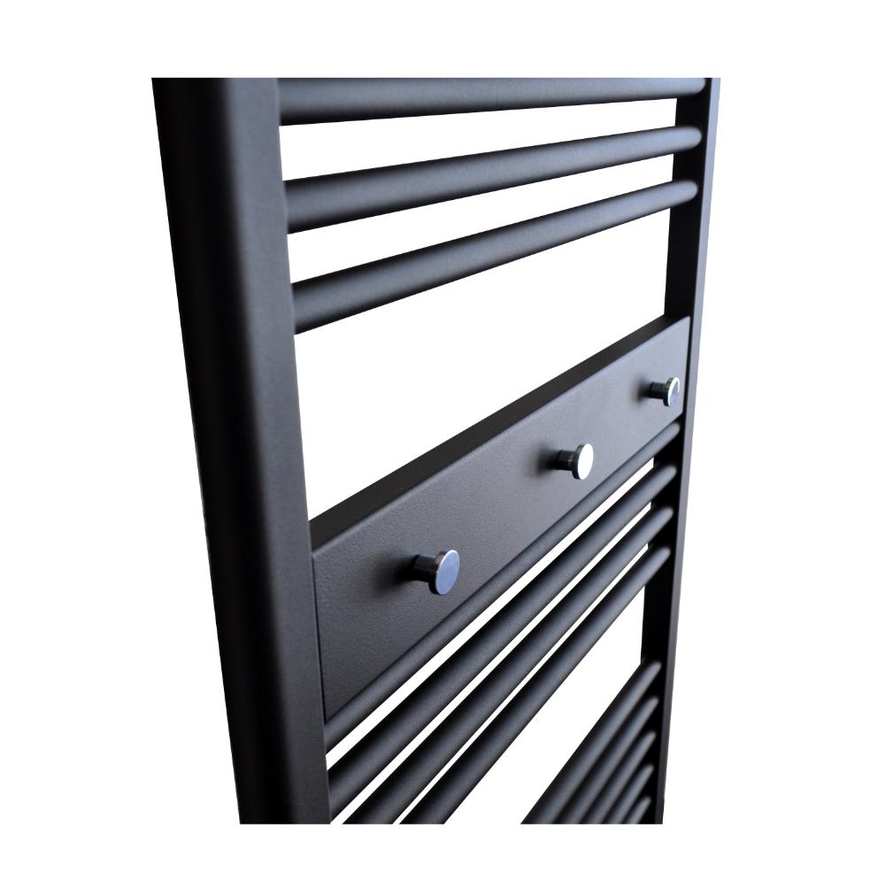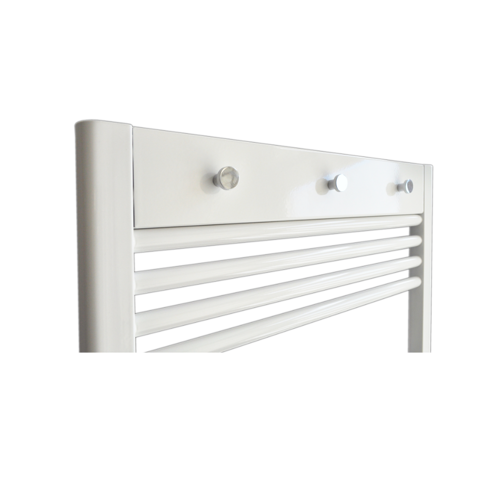 Een paneel met drie handdoekknoppen, maar ook handig voor badjassen! Warme handdoeken na het douchen is een luxe. Daarbij geeft dit paneel de radiator een mooie design uitstraling en geleidt het ook goed de warmte! Deze panelen zijn te plaatsen op de Sanicare radiatoren Standaard en Middenaansluiting van 60 cm breed. Voor plaatsing is er geen gereedschap nodig! Het paneel is leverbaar in de kleuren wit en mat zwart.