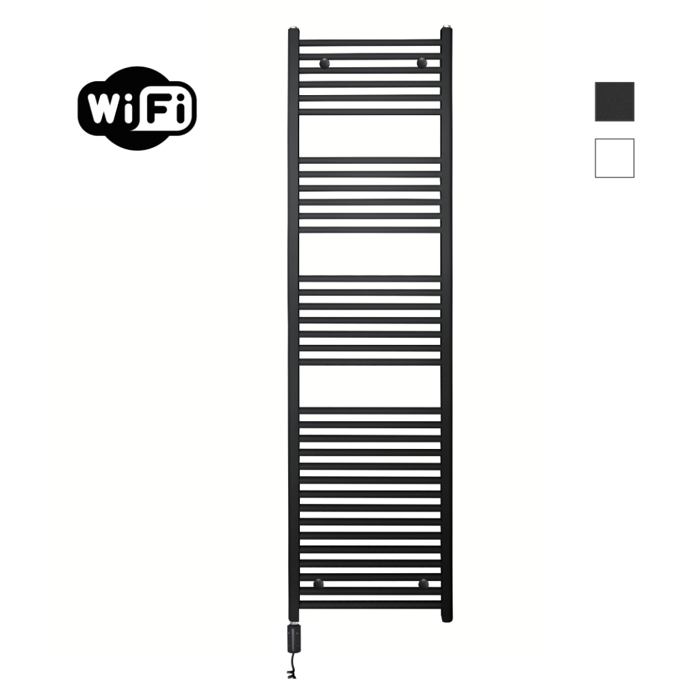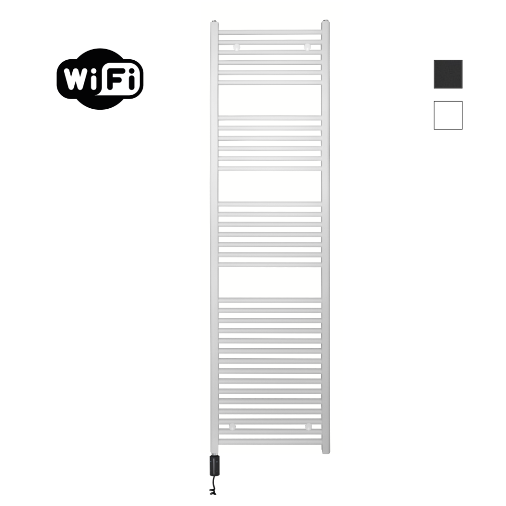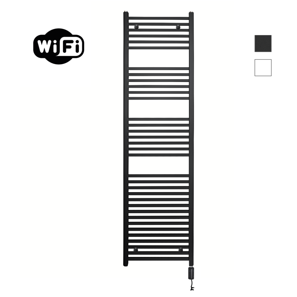 Deze elektrische variant wordt plug & play geleverd met stekker, spiraalsnoer (+/- 50-120 cm), HVW-thermostaat, ontluchtingsplug en overdrukventiel. De radiator is gevuld met een speciale vloeistof die roest, kalk en corrosie voorkomt; het ventiel voorkomt overdruk (max. 3 bar). Ontluchten bij ingebruikname is aanbevolen. Inclusief wandbeugels in kleur. Aanpassingen aan stekker/snoer zijn niet toegestaan. Plaats het stroompunt niet boven/achter de radiator en installeer de radiator niet in of naast vochtige zones (douche/bad).
