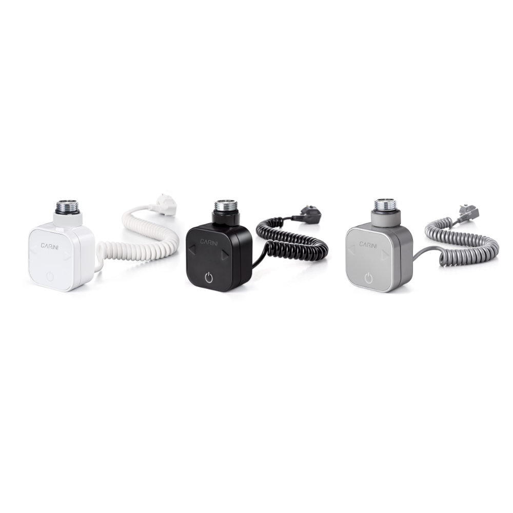 – Mat wit (getextureerd met een kleine sprankeling) met thermostaat silver, zwart of wit