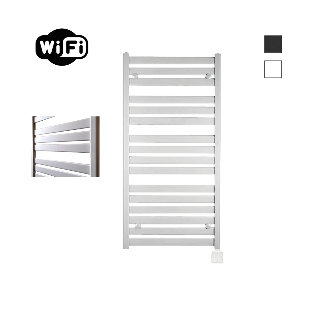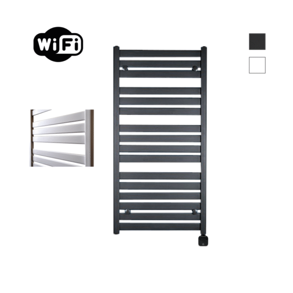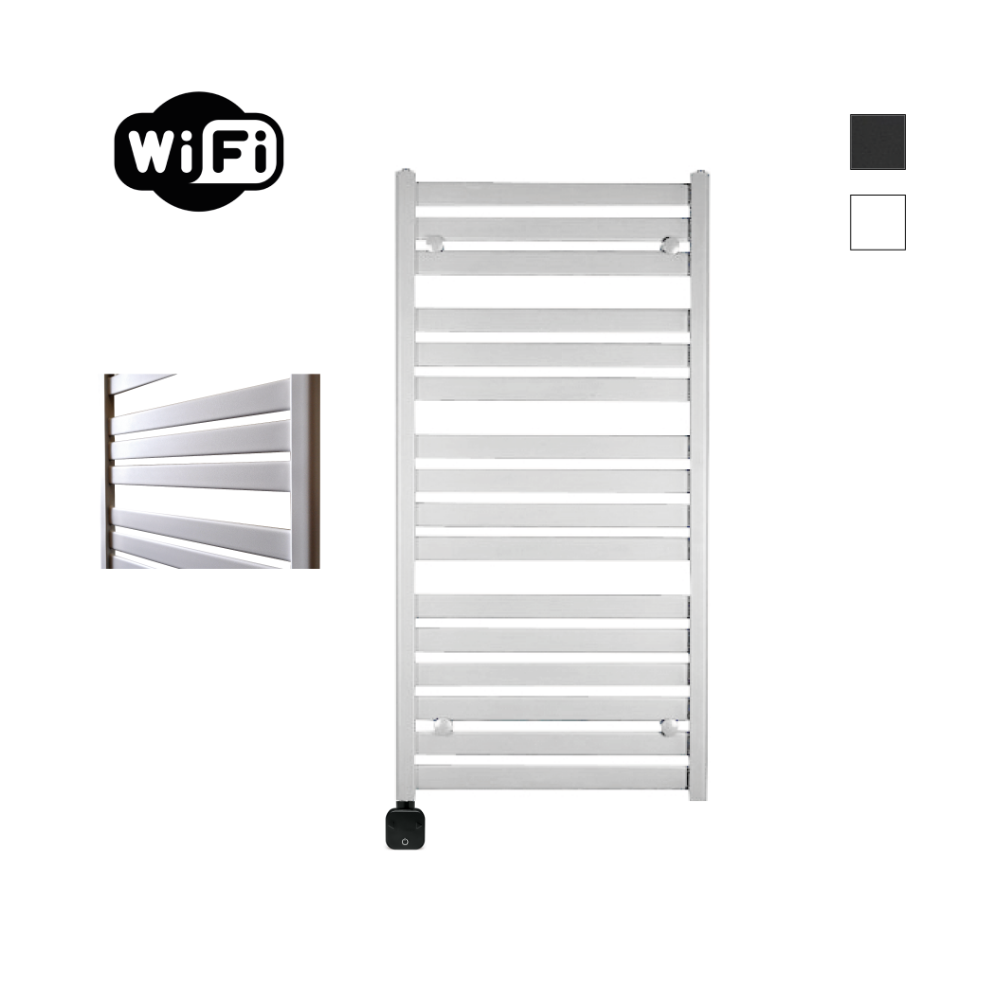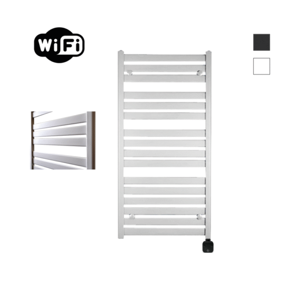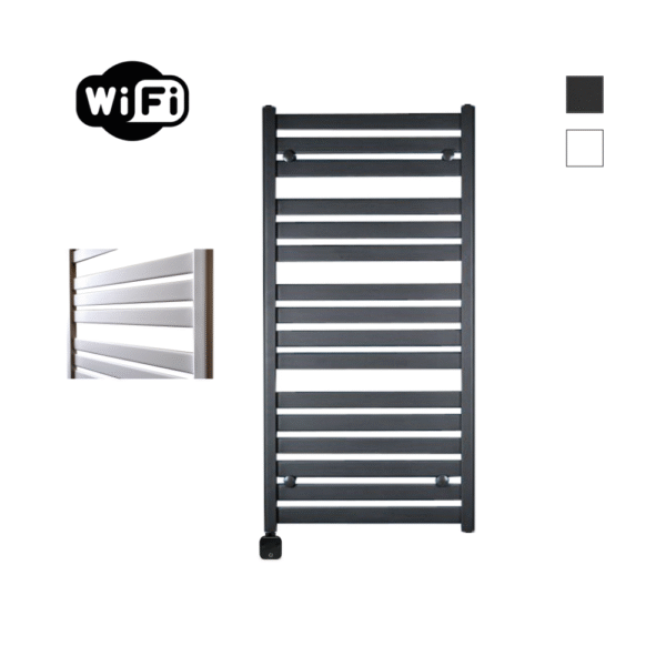 Deze elektrische designradiator combineert een strak, tijdloos design met de nieuwste technologie. In plaats van traditionele ronde buizen bestaat de radiator uit vlakke panelen, wat zorgt voor een minimalistisch silhouet. De open ruimtes tussen de panelen maken de radiator ideaal voor het verwarmen van handdoeken, terwijl de hoogwaardige structuurlak (mat zwart of mat wit met subtiele sprankeling) een chique, moderne uitstraling geeft.